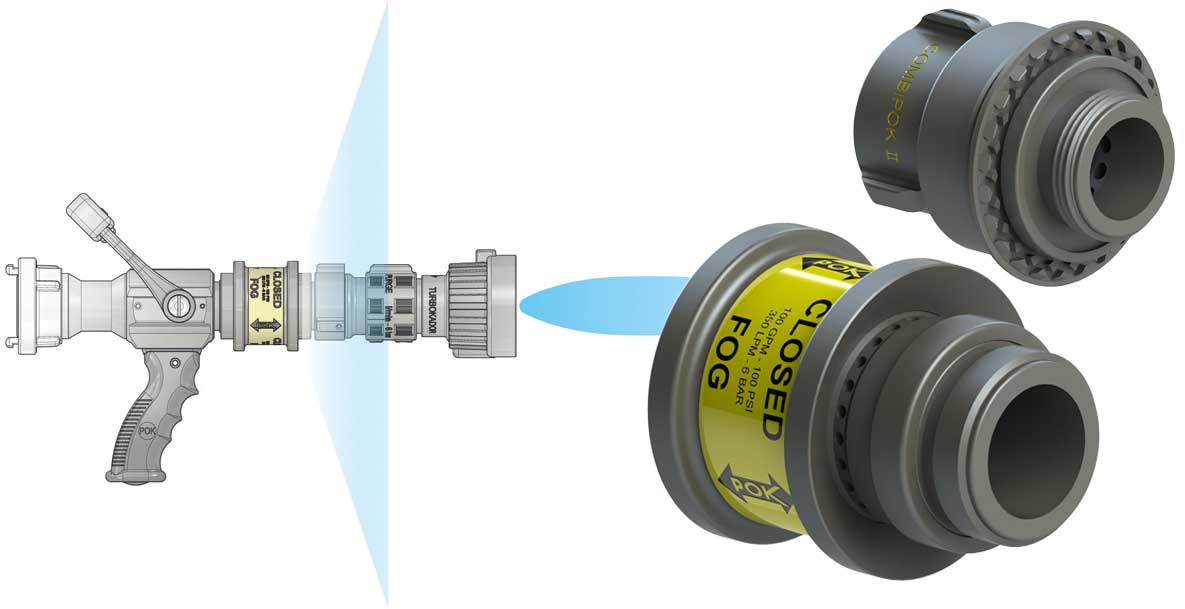 One of the problems encountered by the Fire Brigade is to fight fire while protecting the nozzle holder simultaneously. Indeed, attacking products in ignition with a straight stream allows a quick extinguishing but the intense heat released by the fire forces the nozzle holder to stay at a distance, limiting the effect of the water stream. The solution is to combine a straight stream with a water screen. Combipok I & II are the modern solution to an old problem.